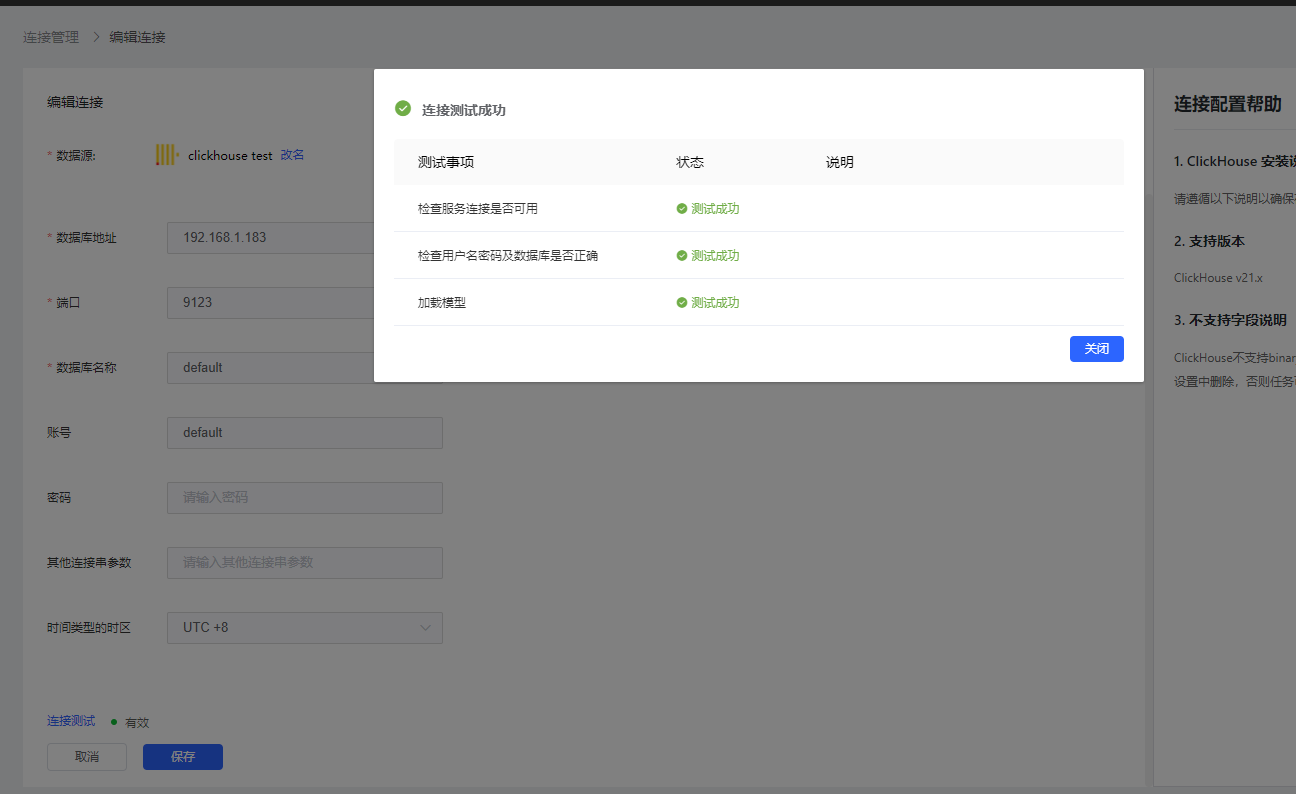 测试连接,提示测试通过后保存连接即可。