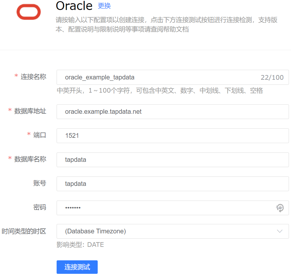 该测试项会使用所填写的用户名密码对Oracle尝试连接并登陆所填写数据库,在用户名错误、密码错误、库名错误、库不存在时Tapdata Agent会提示测试失败,此时请检查用户名、密码、库名的正确性。