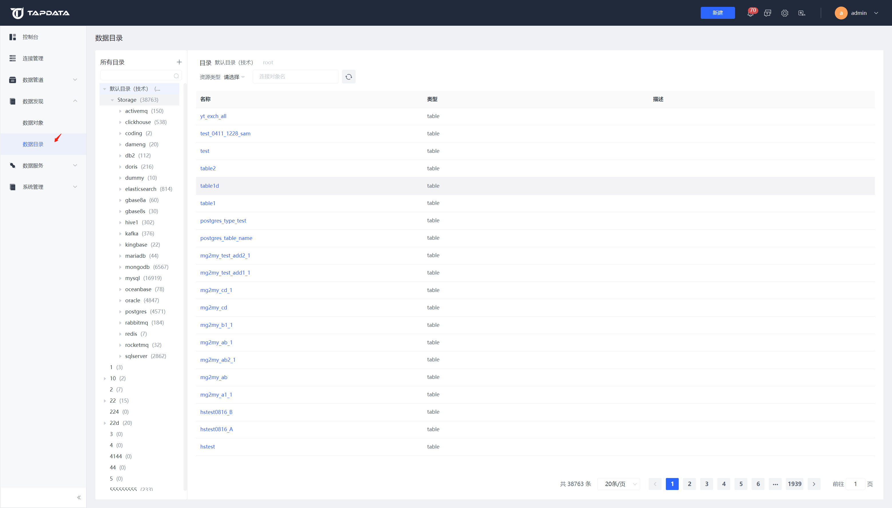 通过数据发现功能,您可以对平台上的数据对象信息就行管理和分类。