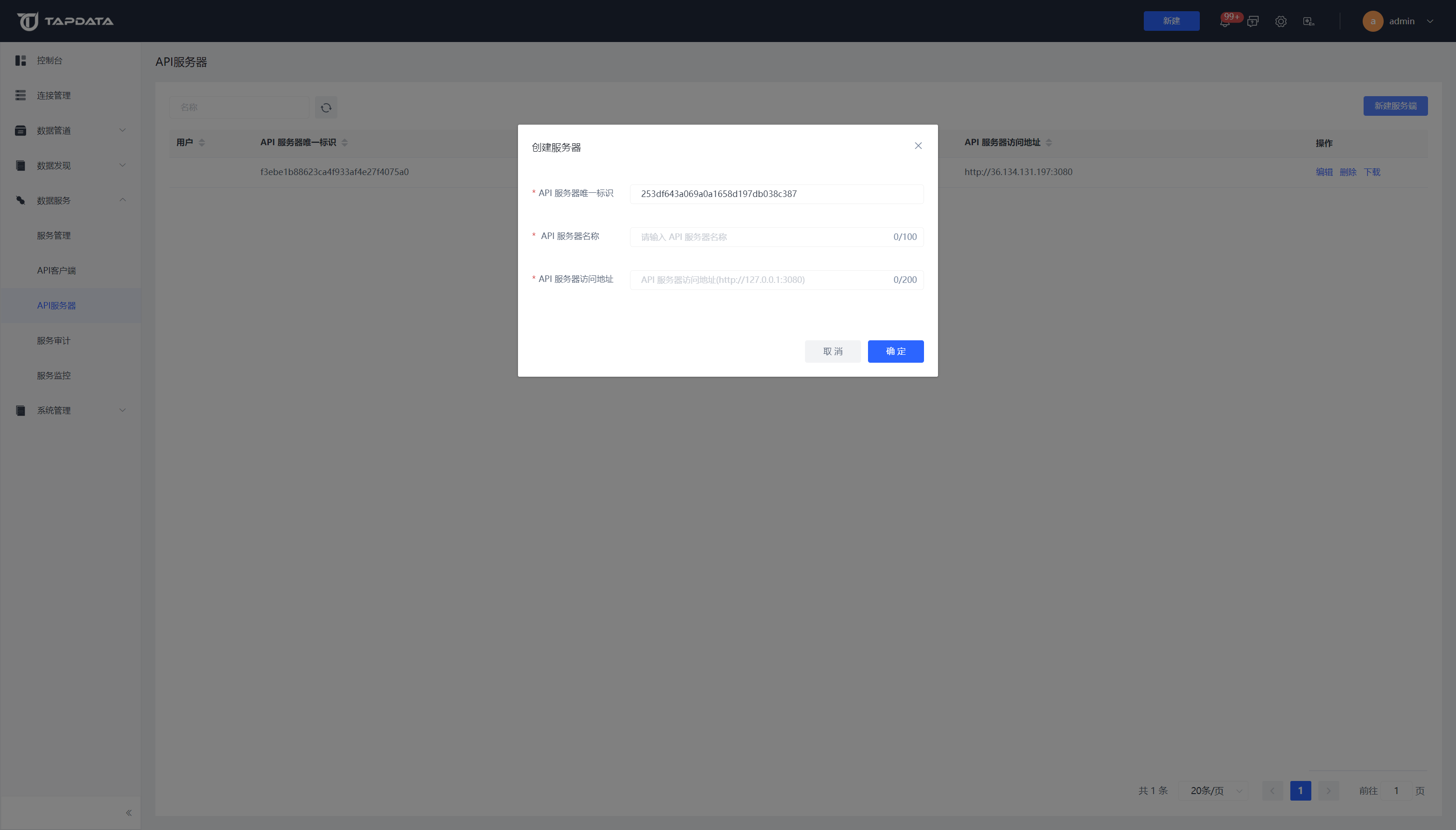 打开【数据服务】的【API服务器】界面。